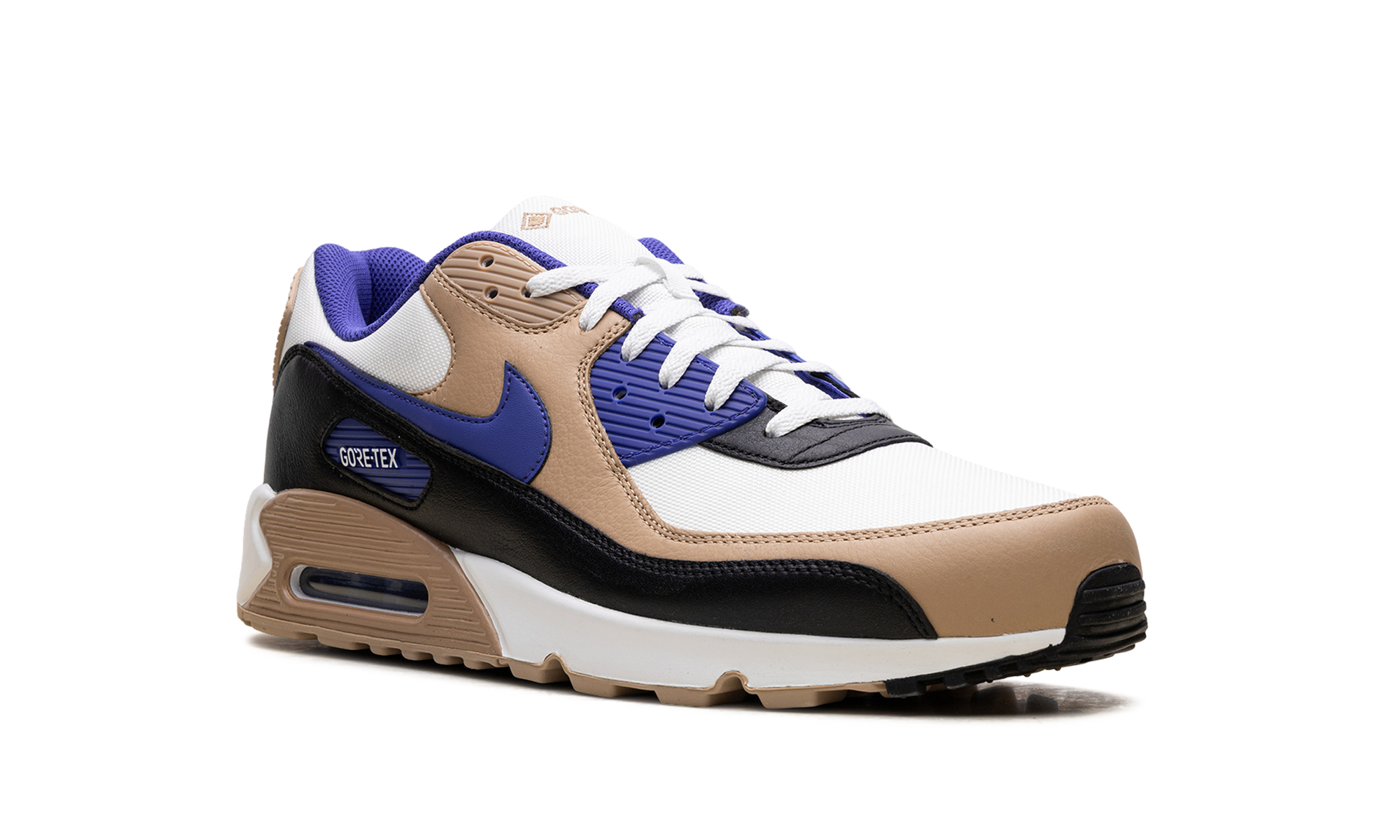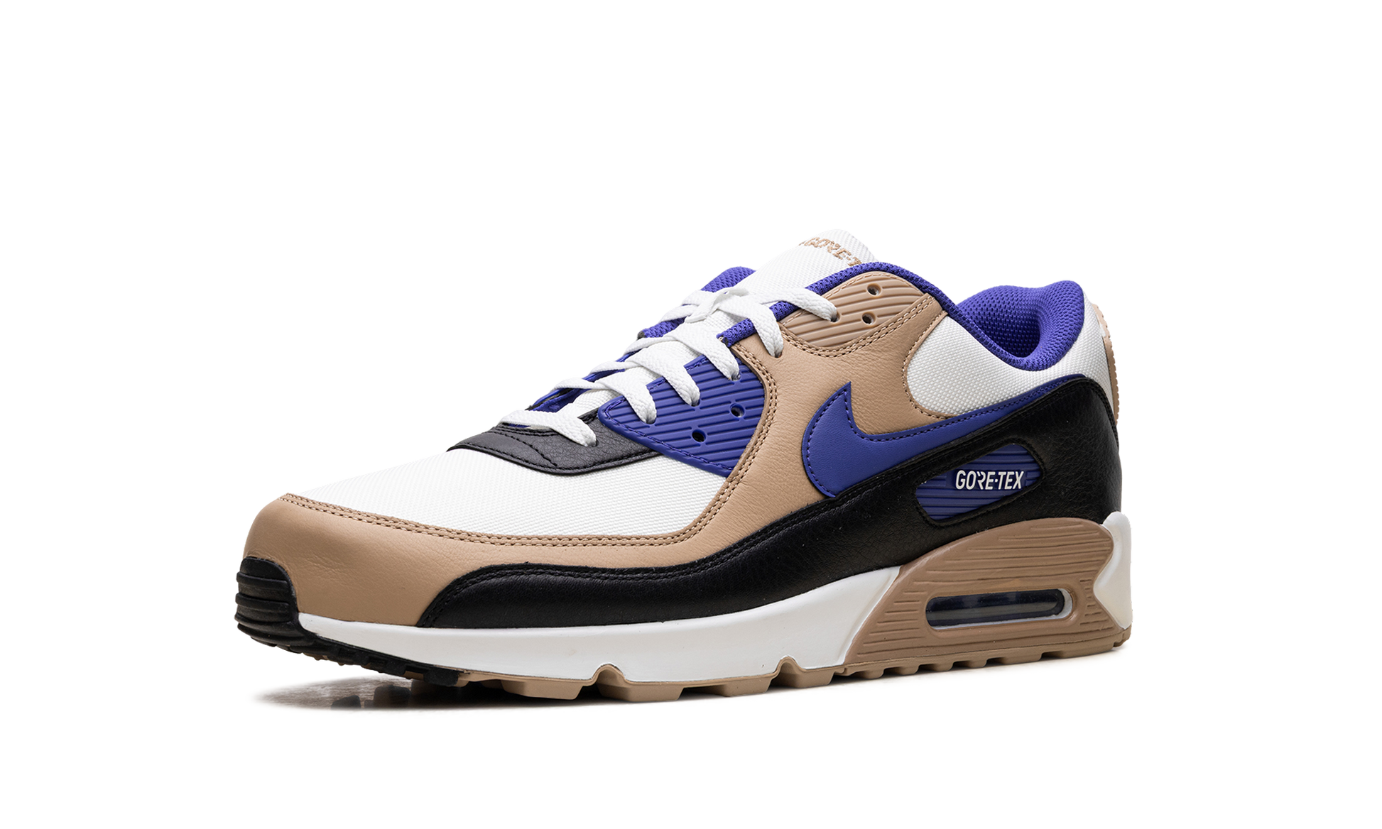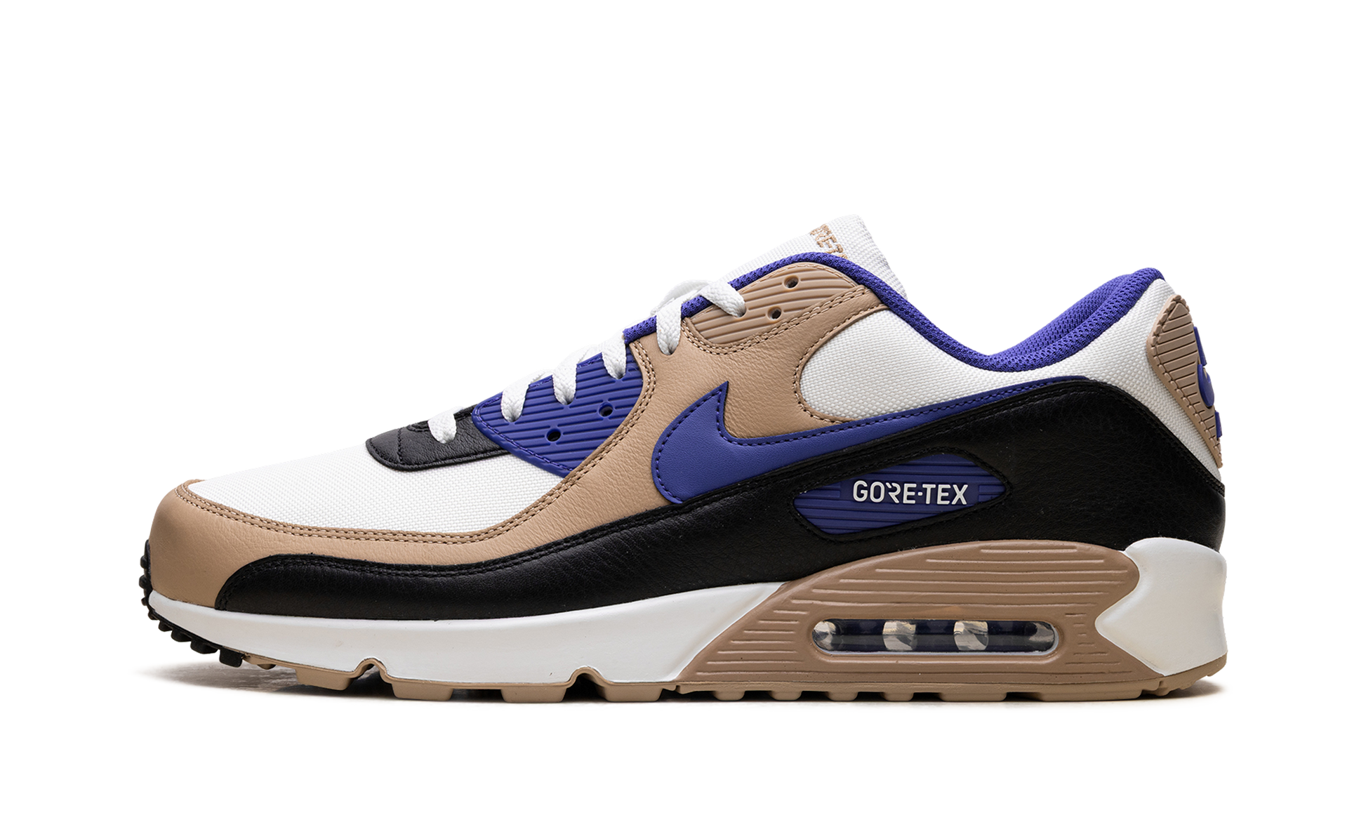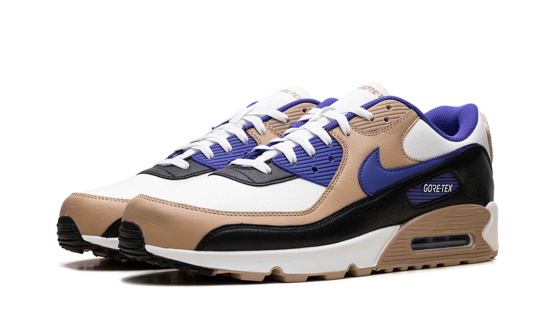 The Nike Air Max 90 Gore-Tex "Lapis" is a colorway of the retro running shoe with a water-resistant construction. Ideal for inclement weather conditions, the Air Max 90 Gore-Tex in “Lapis” features a water-resistant Gore-Tex membrane that helps keep water from reaching the wearer’s foot. As for the rest of the design, the shoe features a white canvas base with hemp-colored leather overlays and a Lapis leather Swoosh. More Lapis accenting can be found on the eyelet panels, inner lining, and “Air Max” branding window on the side. Classic “Nike Air” detailing is located on the heel while “Gore-Tex” branding is found on the tongue. Release date: September 14, 2023 Lapis