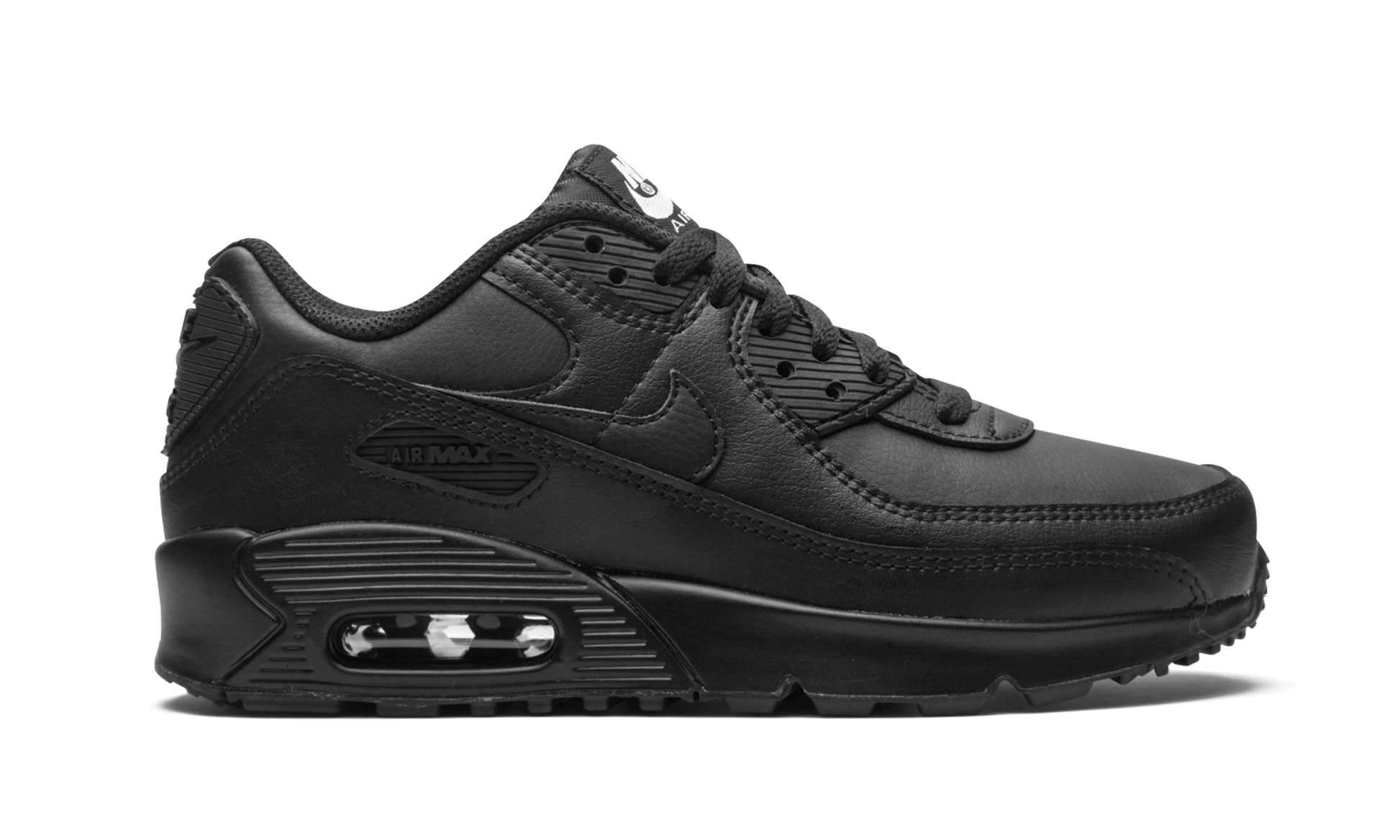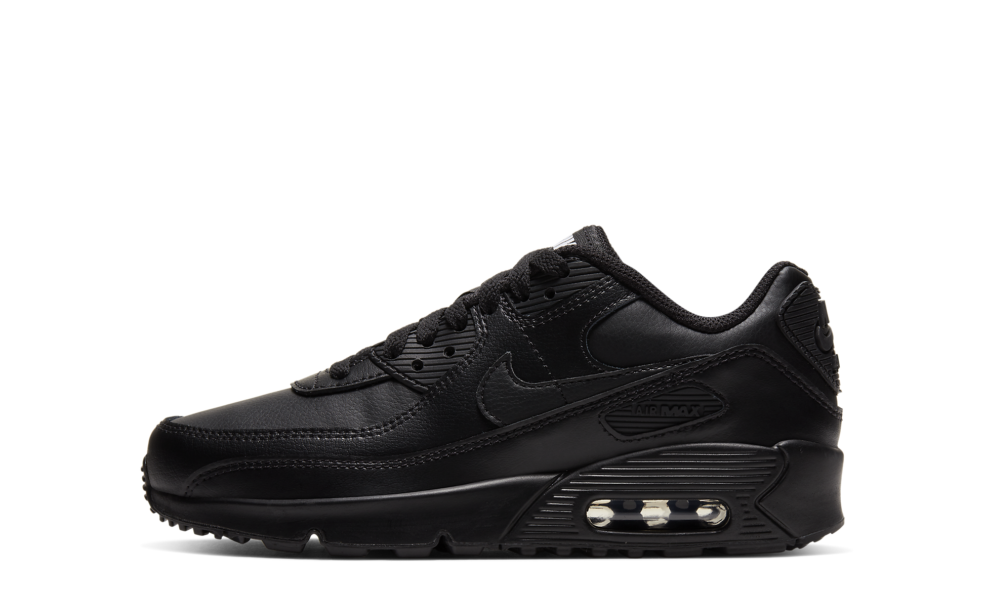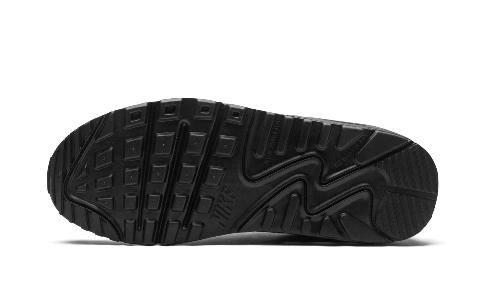 The Nike Air Max 90 "Triple Black" decks out the OG running style in an almost all-black color palette. The just-one-shade sneaker makes a monochromatic statement, while subtle detailing provides textural contrast. The Air Max 90 is framed with a full-grain leather TPU and rubber-like ribbed panels on the upper, and underneath, a tonal Air sole unit-cushioned midsole completes the all-black design. The only color you see on the Nike lifestyle sneaker is a white Nike Air Max logo coupled with a Swoosh on the tongue. Triple Black