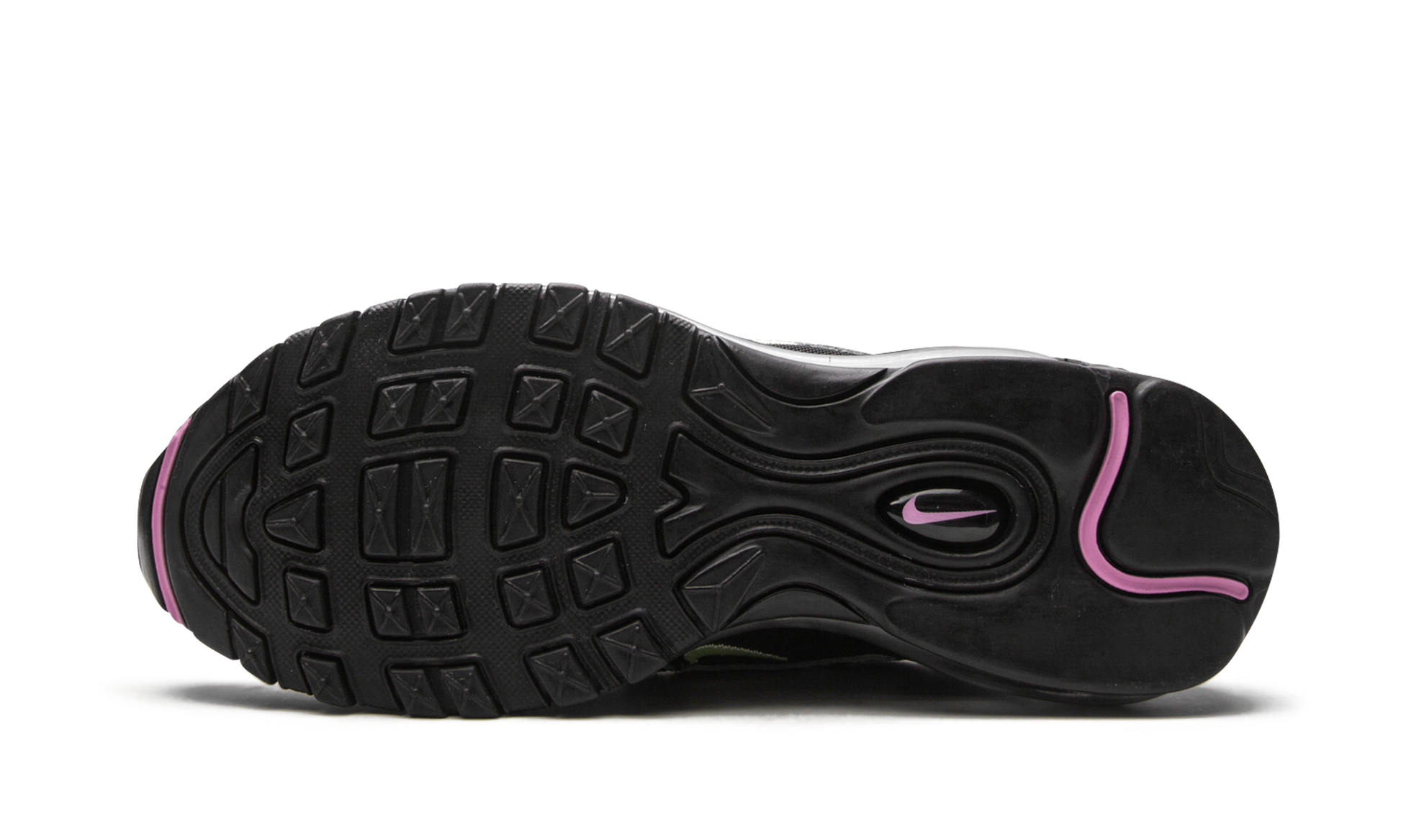 The Women’s Nike Air Max 97 “Splatter” is a women’s edition of the retro running shoe featuring an eye-catching graphic print. On this “Splatter” colorway, wavy pink leather panels contrast the black mesh base. The aforementioned splatter motif is printed on the mudguard above the black painted midsole. A mint green Swoosh appears on both sides. Additional pink leather piping is located on the top of the black mesh tongue. A full-length visible Air unit in the midsole cuts a decidedly retro look. Release date: Summer 2020. Splatter