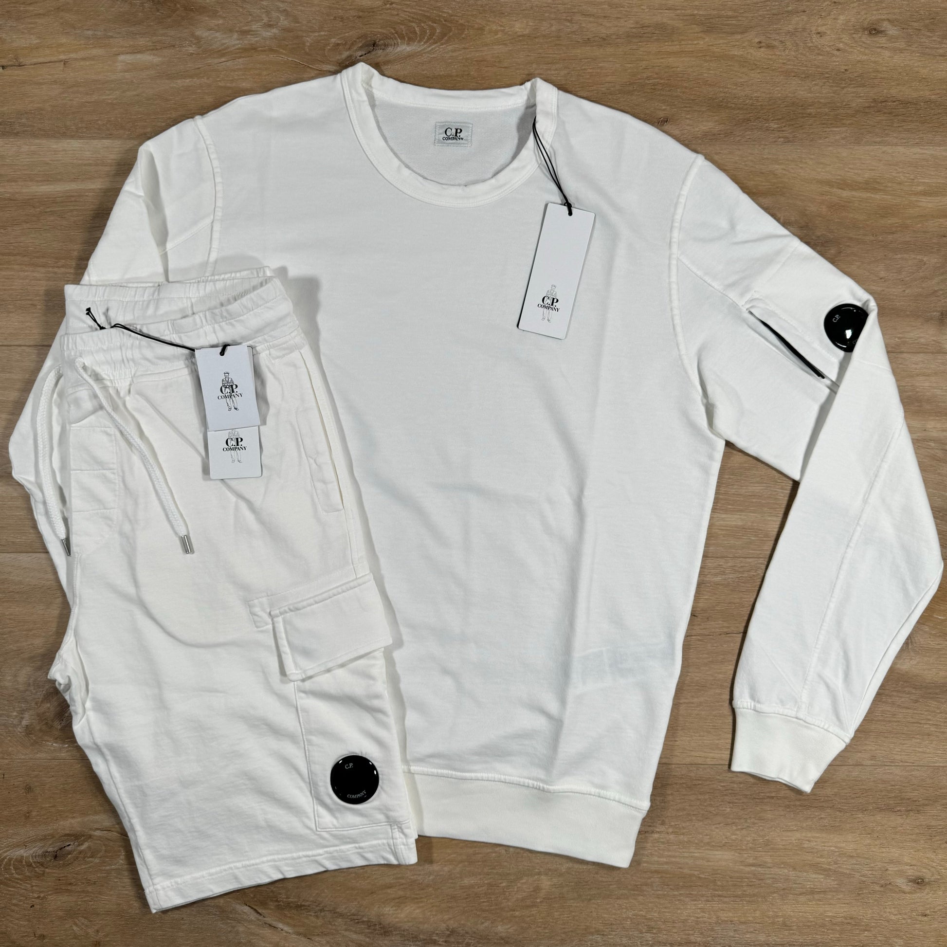 - C.P. Company Light Fleece Lens Shorts in White (16CMSB021A 103)
