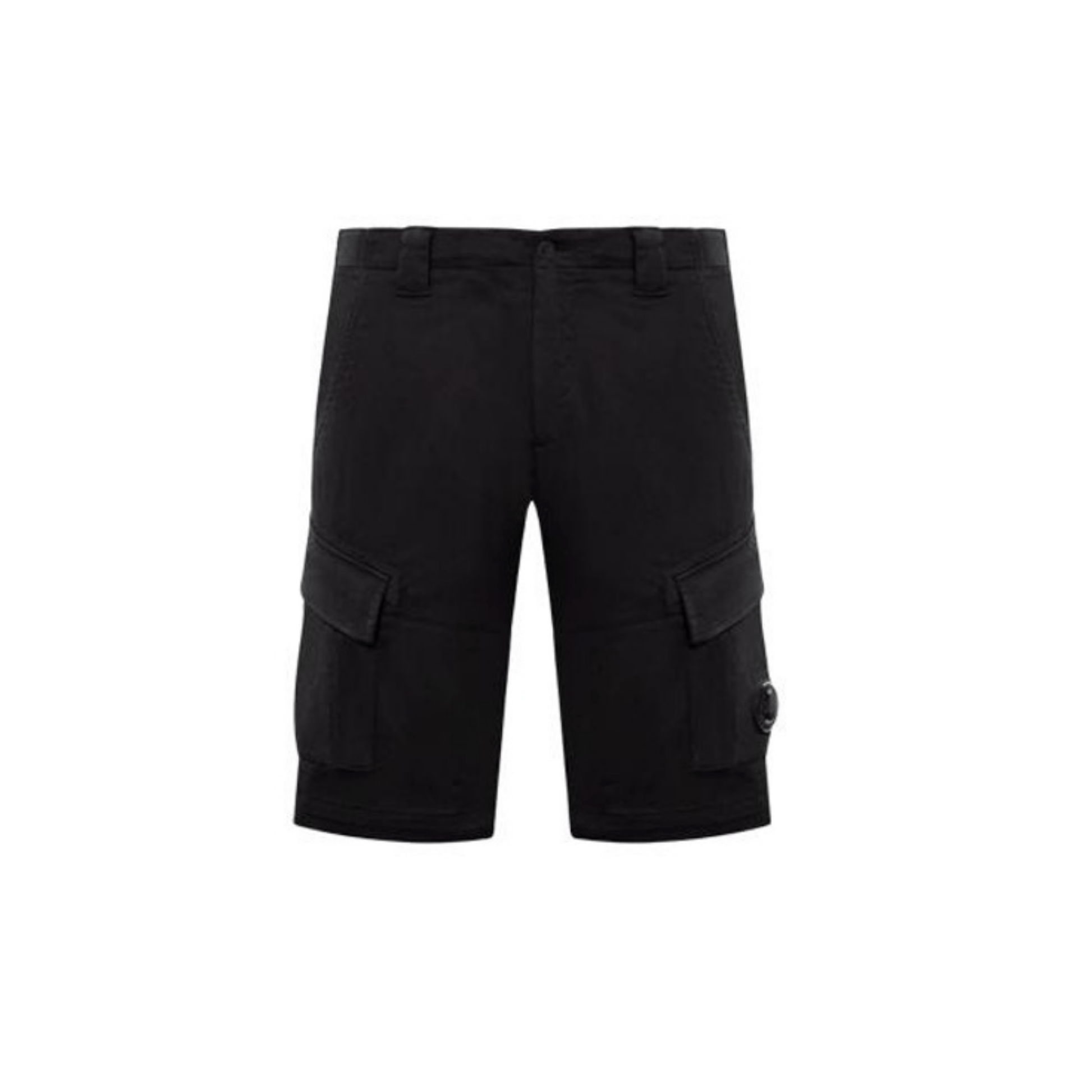 Black CP Company garment dyed Bermuda cargo shorts with knee lens