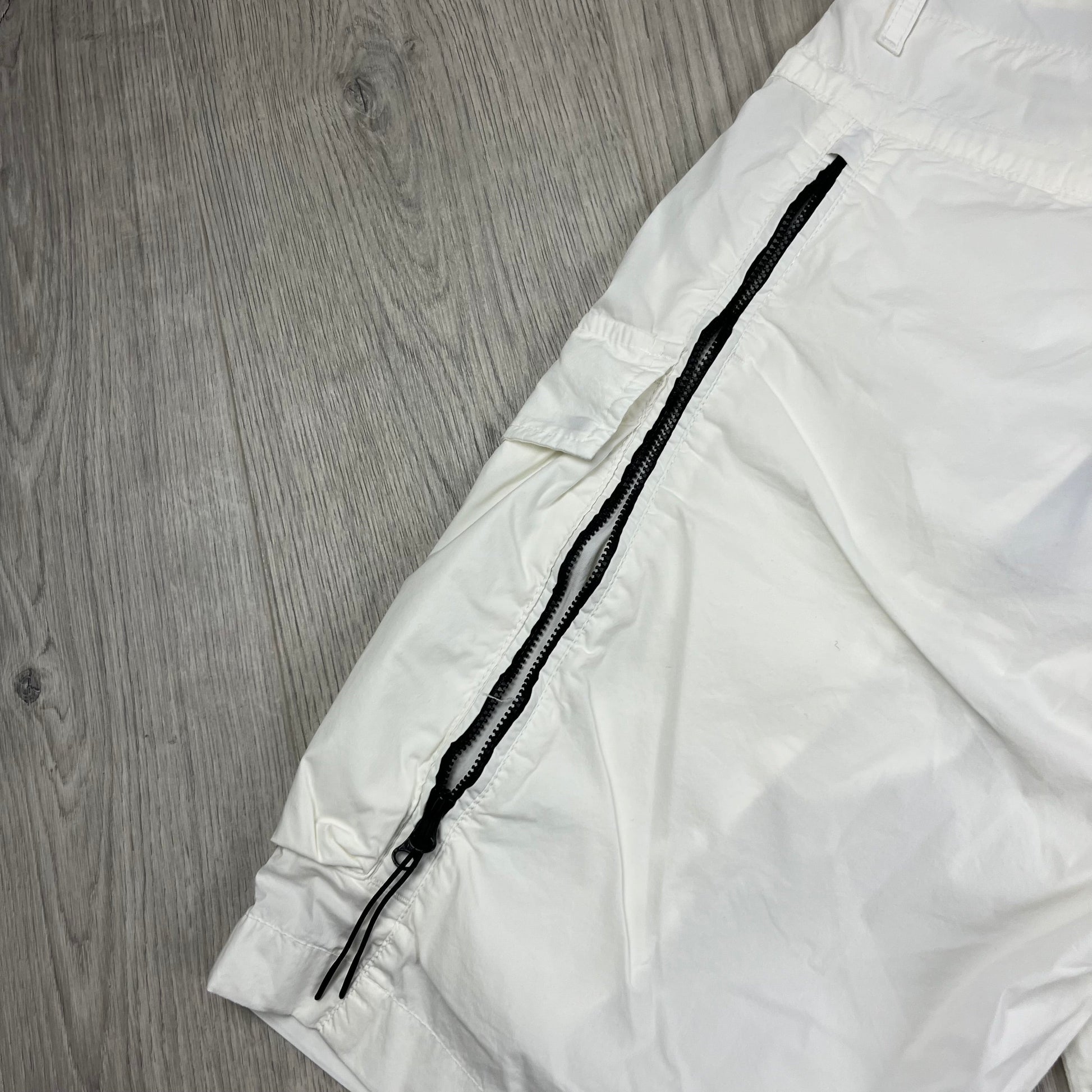 Gauze White CP Company garment dyed Bermuda cargo shorts with knee lens