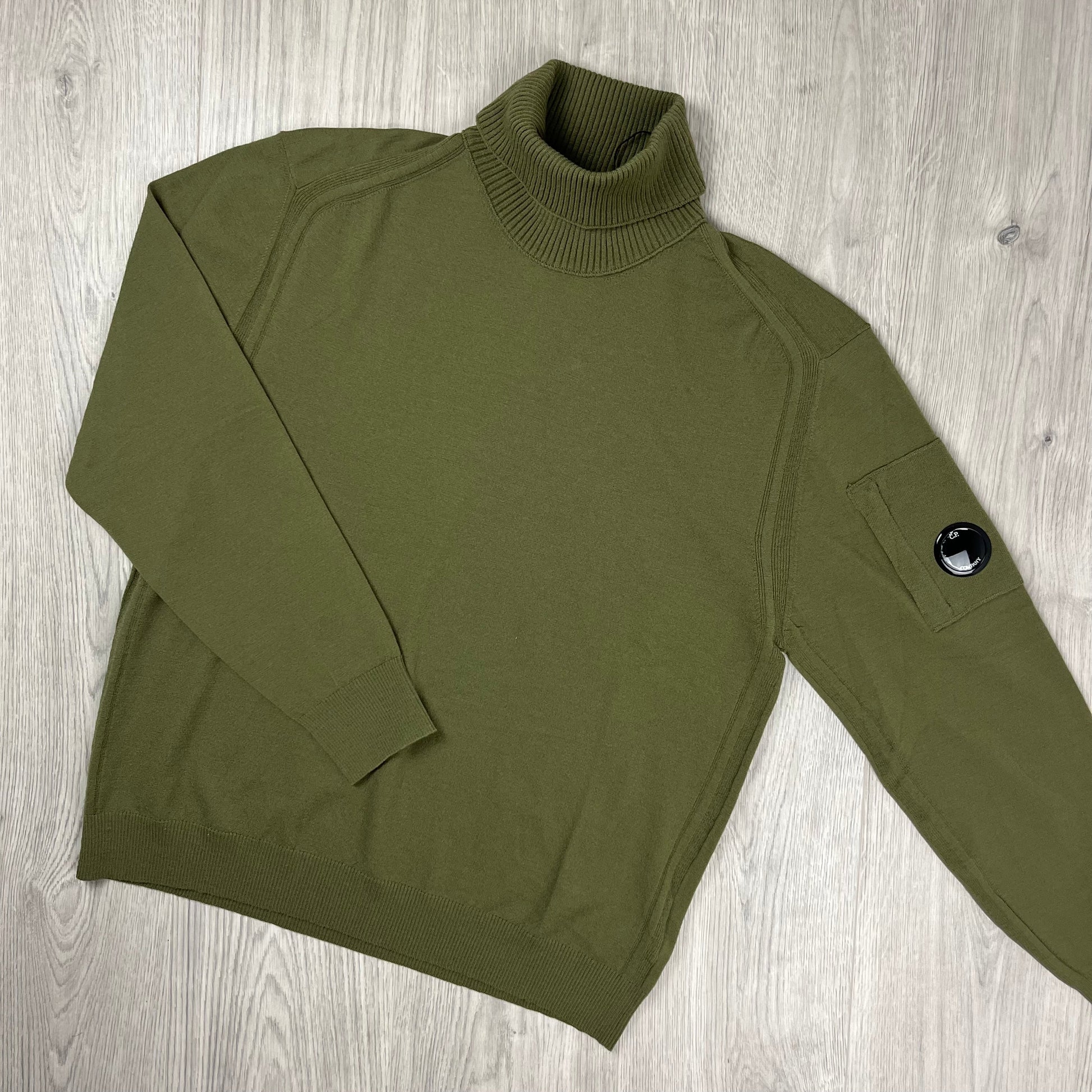 Capers khaki CP Company Merino Wool Turtle Neck Sweatshirt with sleeve lens