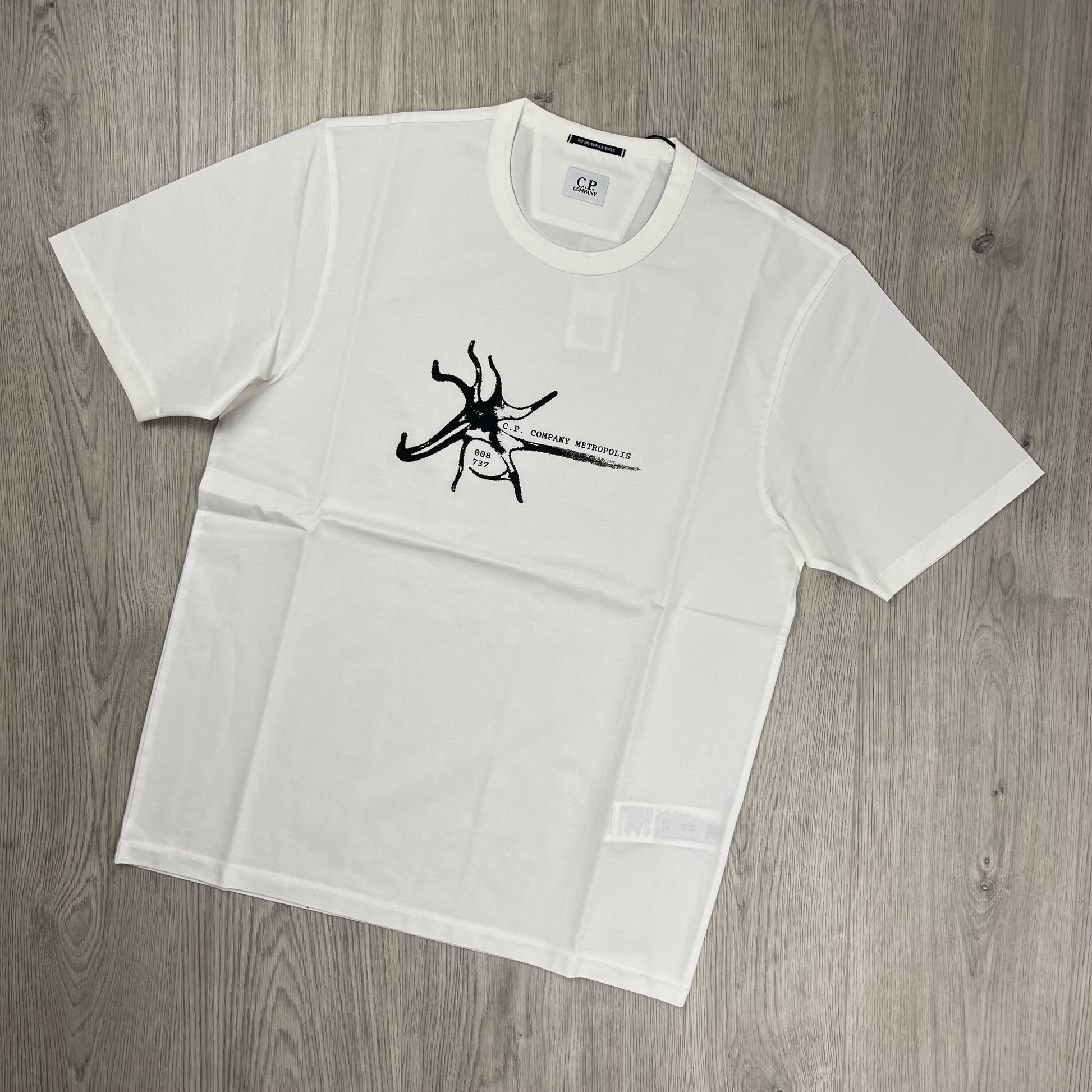Gauze White CP Company Metropolis T-shirt with black printed logo across the chest