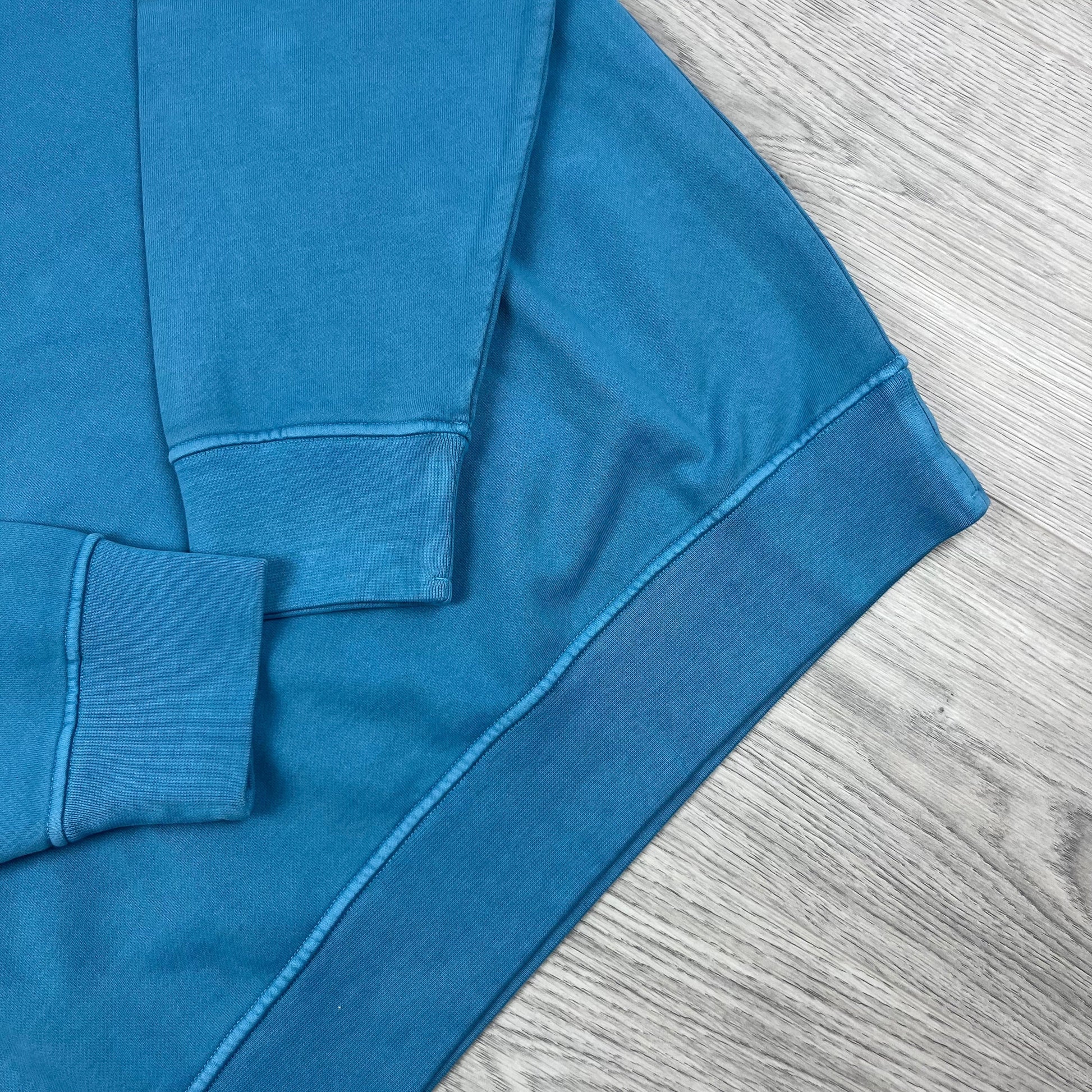 Aegean Blue CP Company Brushed & Emerized Diagonal Fleece Sweatshirt with embroidered patch logo