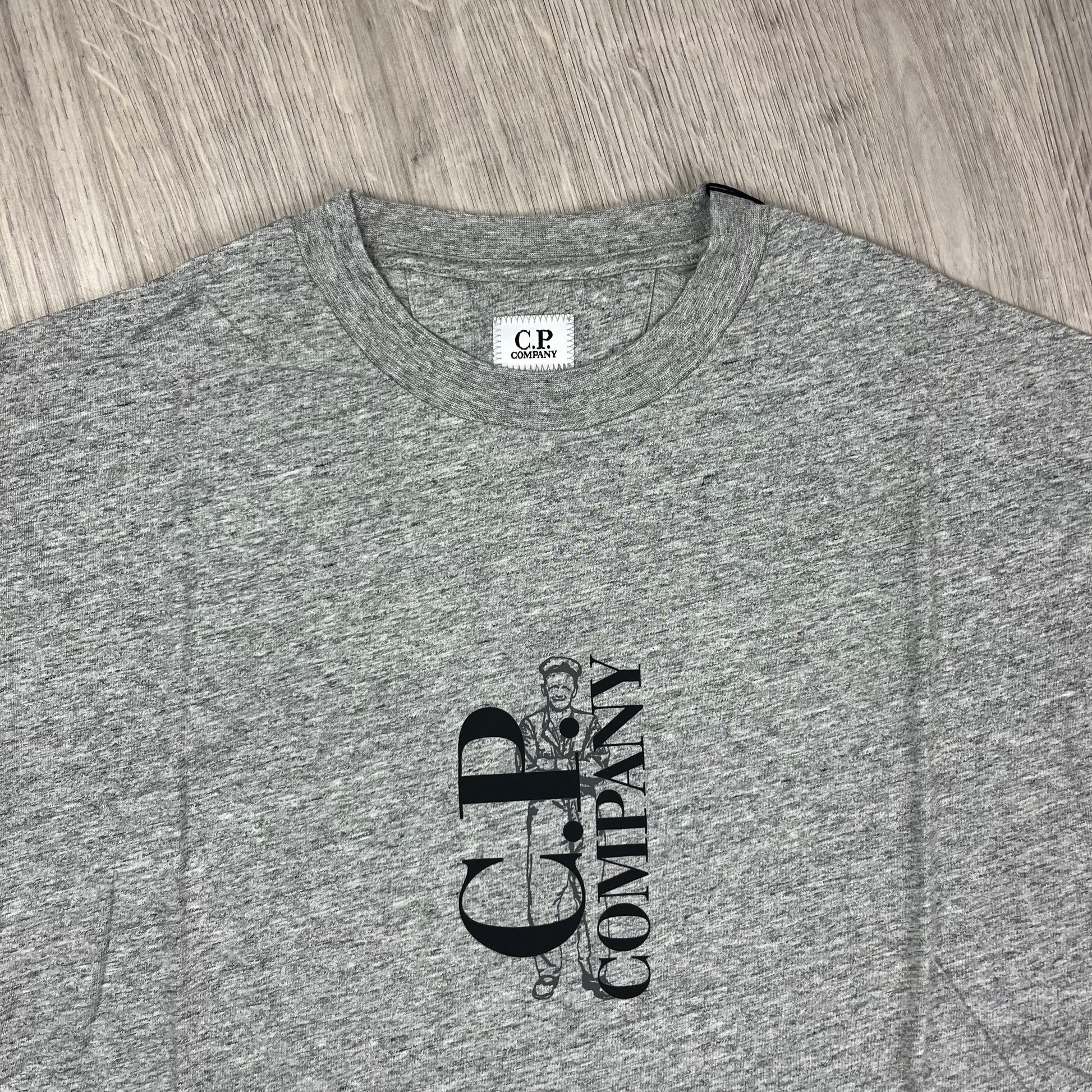 Greystone Melange CP Company 30/1 jersey T-shirt with British Sailor logo print on the chest