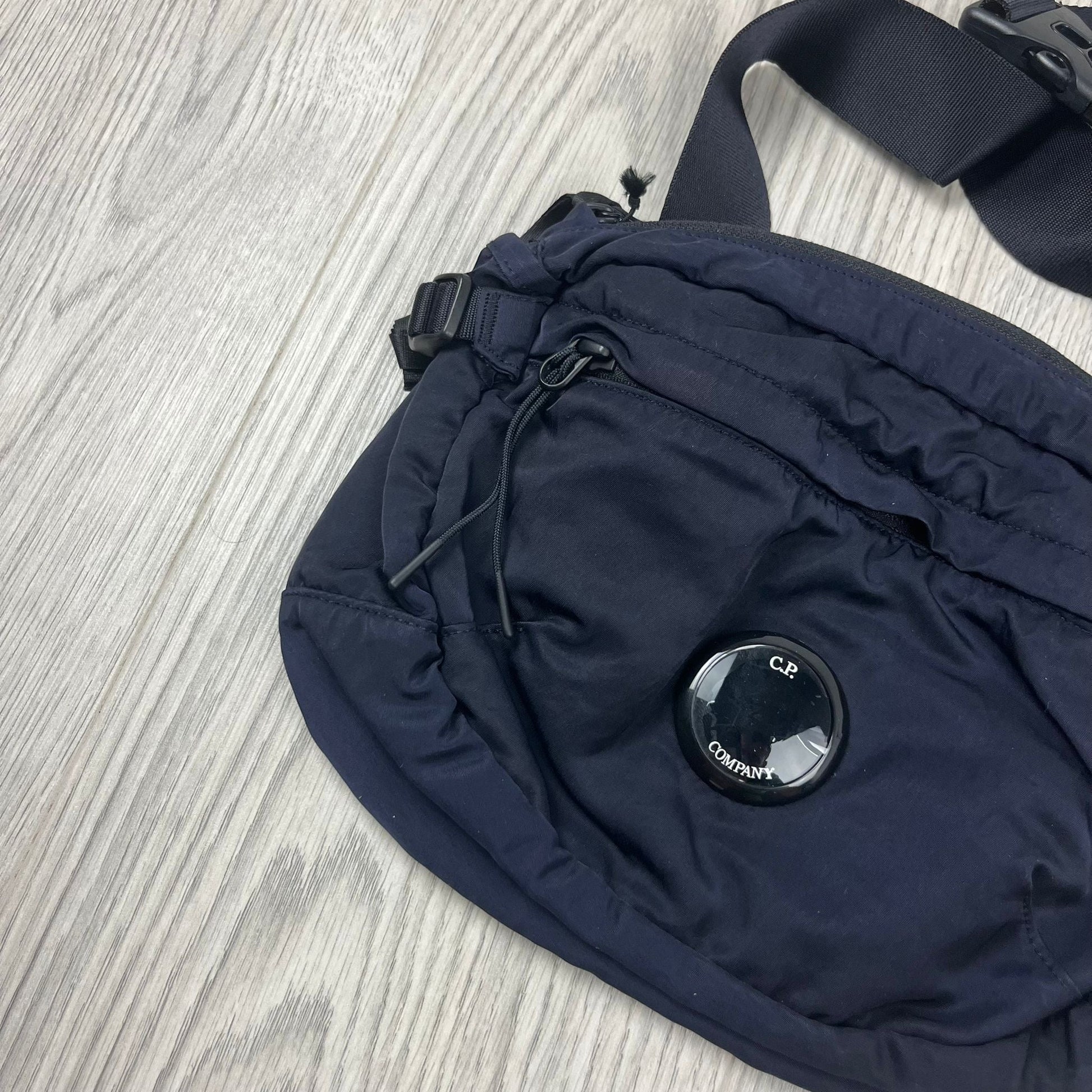 Total Eclipse Navy Blue CP Company nylon body bag with lens detail
