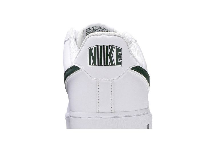The Nike Air Force 1 Low White Cosmic Bonsai features a premium leather upper in a clean white and dark green color scheme. The low-top silhouette includes ventilation holes for breathability and retro branding on the heel, midsole, and tongue. Released on January 1, 2018, the Nike Air Force 1 Low White Cosmic Bonsai is available now at Side Kicks.