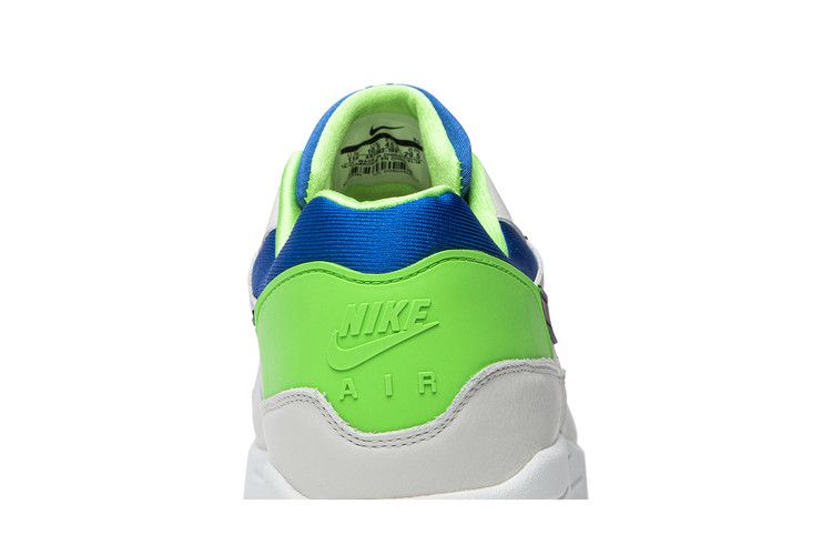 The Nike Air Max 1 DNA CH.1 Pack Huarache Green Royal has a white, black, and Royal Blue neoprene and plastic upper. The design incorporates the traditional Scream Green colorway of the Huarache silhouette, with blue trim on a white base. Neoprene covers the toebox, tongue, and liners, while plastic heel clips and an Air Max midsole finish the look. Released on January 2020, the Nike Air Max 1 DNA CH.1 Pack Huarache Green Royal is available now at Side Kicks.