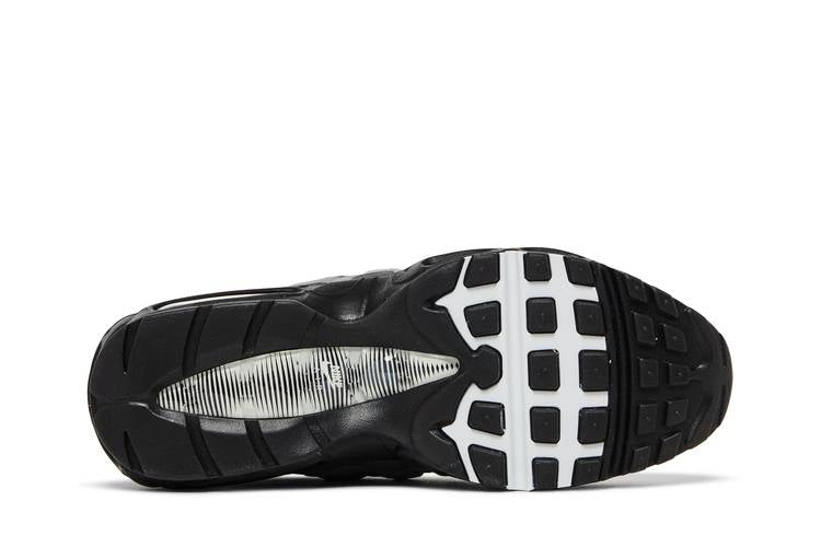 The Nike Air Max 95 Jewel Swoosh Grey features grey and dark grey overlays on a textile underlay for a classic look. The shoe includes a dark grey rubber outsole, shiny black Air Max unit, and suede overlay on the mudguard. The upper is made of textile with white netting, and the quarter panels have alternating dark grey and grey suede finishes. Branding includes a swoosh on the quarters, Air Max writing on the tongue, and NIKE AIR embroidery on the counter. The lace-up closure features round cord laces and a padded tongue for comfort.