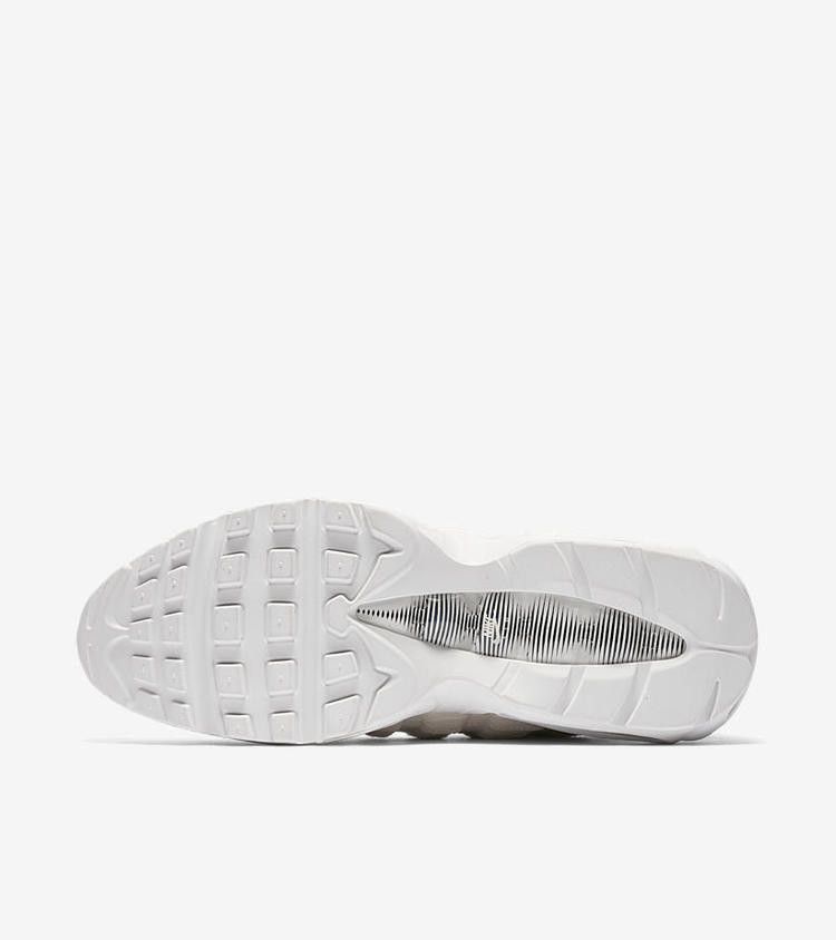 The Nike Air Max 95 Unearthed features a summit white, cacao wow, light british tan, and velvet brown layered design inspired by earth's strata. The wave-patterned upper combines synthetic and mesh materials with white speed lacing eyelets. Embroidered branding appears on the tongue and lateral ankle, while blue Air units underfoot represent water. The asymmetrical overlays showcase distinct mineral and soil-inspired tones. Released on {date}, the Nike Air Max 95 Unearthed is available now at Side Kicks.