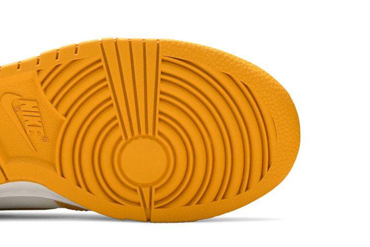 Desc: The Nike Dunk High Dark Sulfur (Women's) showcases a blend of white and dark sulfur hues. Crafted with white leather on the toeboxes and quarters, it features "Dark Sulfur" accents on the eyestays. The Swooshes, mudguards, collar flaps, and heels match this contrasting color scheme. White laces complement the tongue wrapped in white nylon, with a linear pattern sole and perforated toebox enhancing the overall design. Inspired by a timeless silhouette, this model was released on April 16th, 2021.
