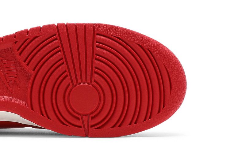 The Nike Dunk High First Use Red features a high-top design with a leather and suede upper and rubber sole. The predominantly red colorway includes white accents on the laces and midsole. The Swoosh logo appears on both sides—red with a white outline on the outer side and solid white on the inner side. Released on July 31, 2021, the Nike Dunk High First Use Red is available now at Side Kicks.