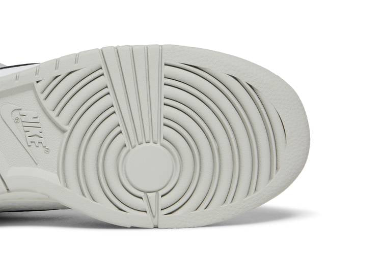 The Nike Dunk High FLS for women features a white tumbled leather upper with matte grey leather overlays. Emerald accents and metallic Swoosh details add a pop of color and shine. The shoe is finished with a rubber cupsole and grey outsole for traction. Inspired by performance hoops shoes, the Dunk High FLS seamlessly transitions into streetwear fashion.