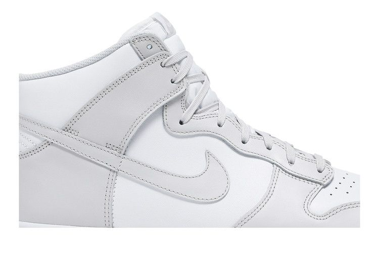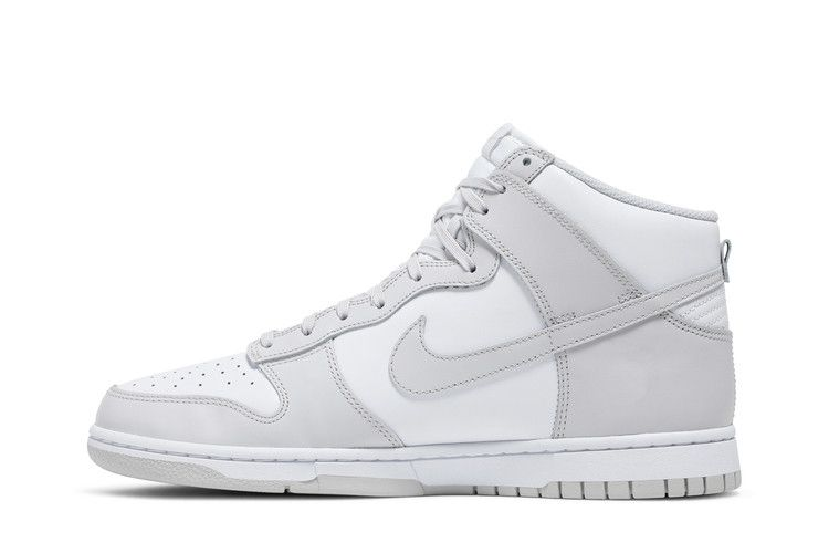 The Nike Dunk High Retro White Vast Grey (2021) features an understated two-tone colorway inspired by vintage ‘80s basketball shoes. The leather upper combines a clean white base with subtle grey overlays and a matching grey Swoosh, reminiscent of the iconic ‘Be True to Your School’ series. With a low-profile midsole and rubber outsole, this design offers a classic look perfect for both performance and casual wear.
