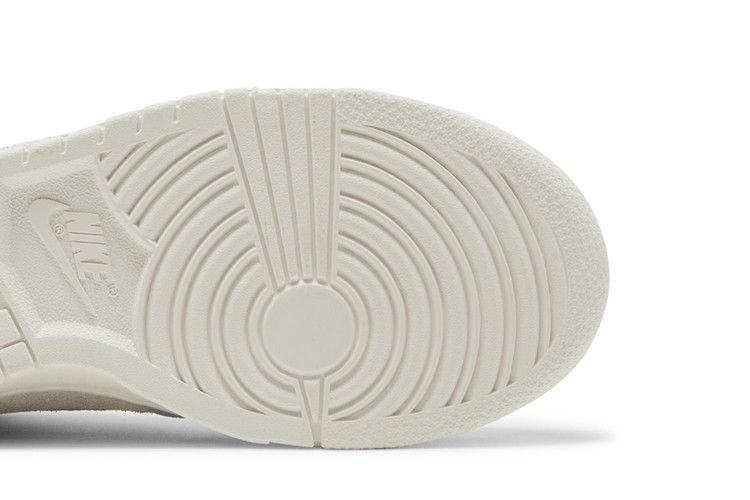 The Nike Dunk High SE Clouds Celestine Blue (Women's) features a hairy suede upper in sail with white and blue suede overlays, matching the cloud-inspired theme. Perforations on the toe box enhance breathability, while flat white laces and a padded tongue ensure a secure fit. The white foam midsole and rubber outsole provide traction with concentric circles, grooves, and stars. Released on March 1, 2023, the Nike Dunk High SE Clouds Celestine Blue (Women's) is available now at Side Kicks.