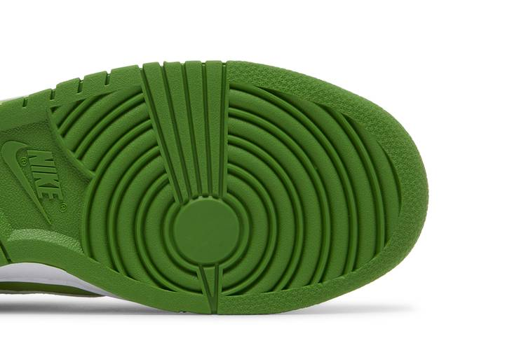 The Nike Dunk Low ‘Chlorophyll’ features a light green leather upper with darker green overlays and white Swooshes. Woven tongue labels and Nike embroideries on the heel tabs add a retro look. A white and green foam sole completes the design. Released in 2022.