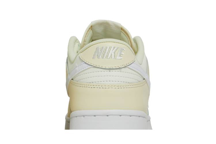 The Nike Dunk Low Coconut Milk showcases a leather upper in off-white with cream overlays and a white Swoosh. It includes Nike branding on the tongue and back tab, sitting atop a durable rubber cupsole with a yellow outsole. Inspired by the original 1985 design, this sneaker offers a classic look with a modern twist.