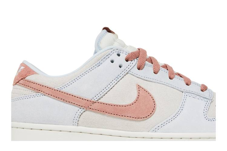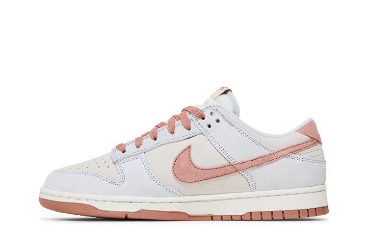 The Nike Dunk Low Fossil Rose showcases a Fossil grey premium suede upper complemented by Rose suede Swooshes and heel wraps. It includes a woven Nike tongue label and a contrasting white and rose Air sole for a stylish finish. Released in May 2022, this shoe offers a sleek and modern design inspired by classic Nike Dunk styles.