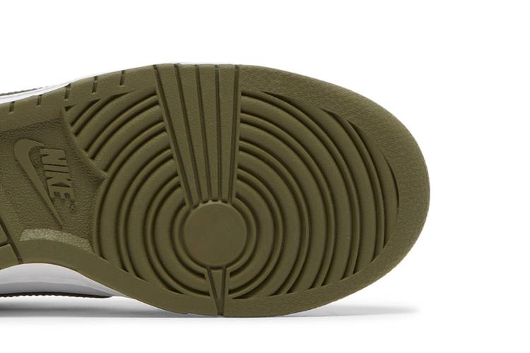 The Nike Dunk Low Medium Olive (Women's) features a two-tone color blocking design inspired by the original 'Be True to Your School' series from 1985. The all-leather upper combines a white base with olive green overlays and a matching Swoosh. A traditional rubber cupsole with a foam wedge provides cushioning, while the olive rubber outsole offers a traction pattern for grip on the hardwood. Released on September 9, 2022, this Dunk Low is a stylish and functional addition to any sneaker collection.