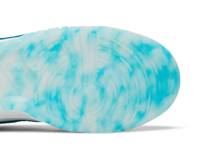 The Nike Dunk Low Ocean (Women's) draws inspiration from bodies of water, featuring a white leather upper with Bright Spruce overlays. The low-cut collar and open-mesh tongue provide comfort, while the semi-translucent rubber outsole showcases aqua-colored accents. Exclusive to women, this shoe released in May 2022.