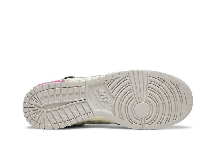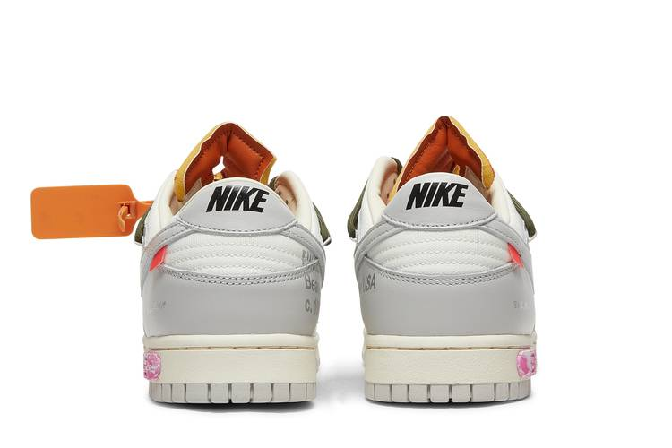 The Nike Dunk Low Off-White Lot 22 is part of the ‘Dear Summer’ collection by Virgil Abloh. This low-top sneaker features a white leather upper with grey canvas overlays and signature Off-White details such as a plastic zip tie and printed Helvetica text. The shoe also includes contrasting pops of color with secondary lacing system, zip-tie, exposed-foam tongue, and a rectangular tab on the Swoosh. Limited to fifty pairs, the ‘22 of 50’ badge is displayed on the lateral midsole.