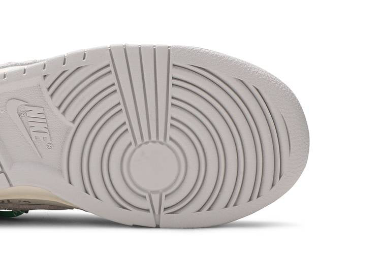 The Nike Dunk Low Off-White Lot 14 is part of the 'Dear Summer' collection, a continuation of the collaboration between Nike and Off-White. This sneaker features a white leather upper with grey suede overlays, along with signature Off-White details like a plastic zip tie and printed Helvetica text. Additional design elements include contrasting pops of color on the secondary lacing system, zip tie, exposed-foam tongue, and a '14 of 50' badge on the lateral midsole. Limited to only fifty pairs, this exclusive release showcases a unique design inspired by Virgil Abloh's creative vision.