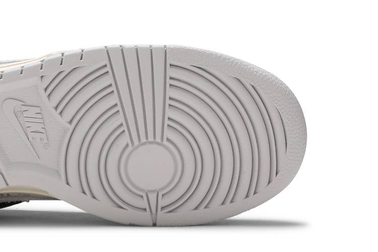 The Nike Dunk Low Off-White Lot 18 is a limited-edition sneaker released as part of the 'Dear Summer' collection in 2021. Featuring a white leather upper with grey suede overlays, this low-top shoe includes signature Off-White design elements such as a plastic zip tie, printed Helvetica text, and colorful accents on the secondary lacing system and zip tie. The '18 of 50' badge on the lateral midsole signifies its exclusivity, with only fifty pairs produced. This unique collaboration between Off-White and Nike showcases Virgil Abloh's distinctive design aesthetic and attention to detail.