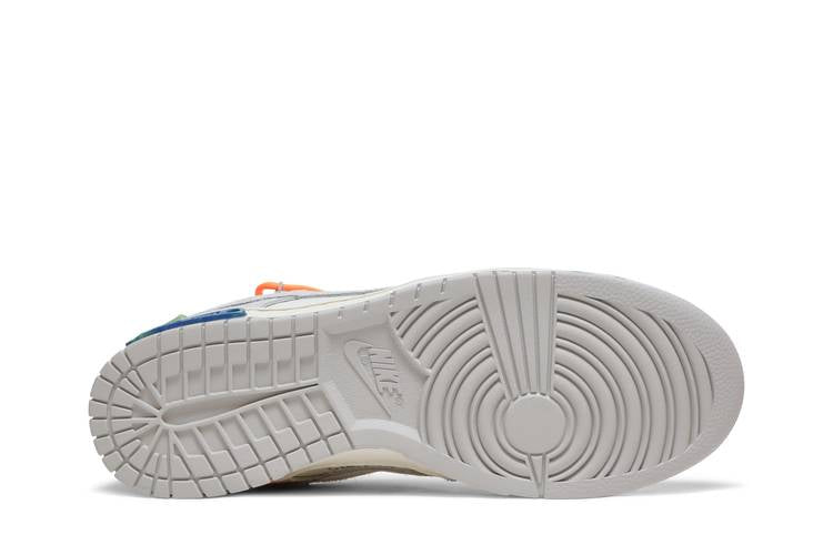 The Nike Dunk Low Off-White Lot 31 is a limited edition collaboration between Virgil Abloh and Nike, featuring a white leather upper with grey suede overlays. The design includes signature Off-White™ elements such as a plastic zip tie, printed Helvetica text, and contrasting pops of color on the secondary lacing system and zip tie. Limited to fifty pairs, each shoe is marked with a ’31 of 50’ badge on the lateral midsole. This iteration of the Dunk Low showcases a unique and eye-catching design inspired by the ‘Dear Summer’ collection.