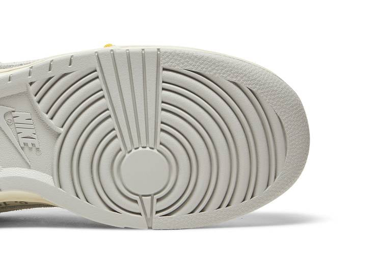 The Nike Dunk Low Off-White Lot 39 is part of the 'Dear Summer' collection, featuring a white leather upper with grey suede overlays and signature Off-White design elements like a plastic zip tie and printed Helvetica text. Limited to fifty pairs, each shoe is marked with a '39 of 50' badge on the lateral midsole. The sneaker also includes contrasting pops of color through the secondary lacing system, zip-tie, exposed-foam tongue, and rectangular tab on the Swoosh. This exclusive release combines premium materials and unique design details for a standout addition to any sneaker collection.