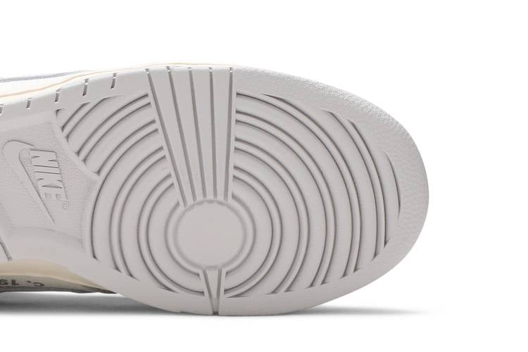 The Nike Dunk Low Off-White Lot 49 is a part of the 'Dear Summer' collection by Virgil Abloh. Featuring a white leather upper with grey canvas overlays, this low-top sneaker includes signature Off-White details like a plastic zip tie and printed Helvetica text. The design also incorporates contrasting pops of color on the secondary lacing system, zip tie, tongue, and Swoosh tab. Limited to fifty pairs, each shoe is marked with a '49 of 50' badge on the lateral midsole.