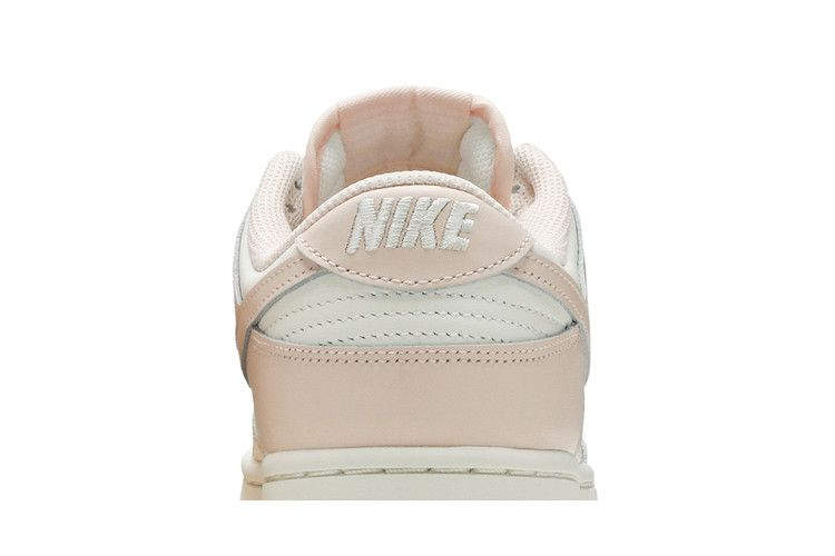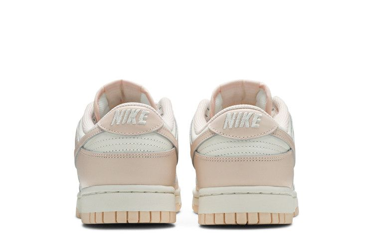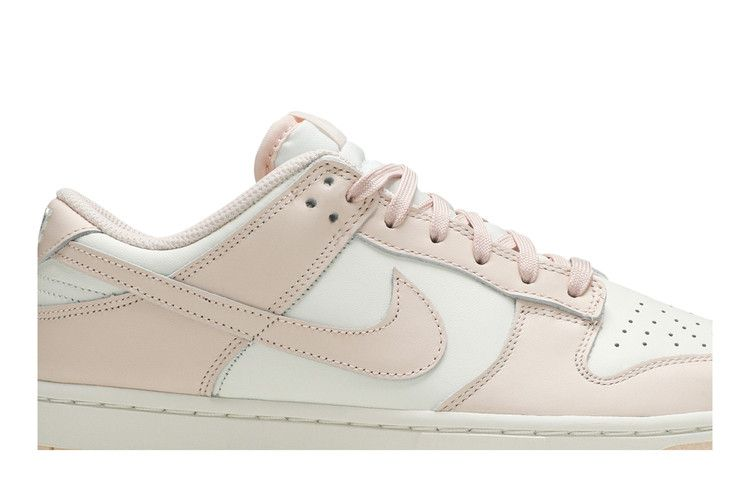 The Nike Dunk Low Orange Pearl for women features a pastel colorway with traditional color blocking inspired by the shoe's '80s roots. The upper is made of white leather with pale coral overlays, including the iconic Swoosh logo. Classic Dunk details like a perforated toe box and padded nylon tongue with Nike branding are included. The rubber cupsole provides stability and traction with a basketball-specific pattern for pivoting. Released in January 2021, this women's exclusive offers a warm palette and retro design elements.