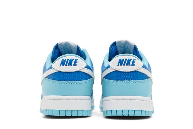 The Nike Dunk Low Retro QS Argon (2022) features a smooth leather upper with marine blue and powder blue overlays, a white Swoosh, and a Nike wordmark on the back tab. The sneaker also includes a woven Nike tag on the nylon tongue and rests on a rubber cupsole with white sidewalls and a pastel blue outsole. Inspired by a coveted CO.JP colorway from 2001, this retro sneaker combines classic design elements with modern comfort.