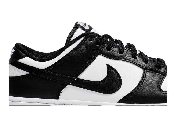 The Nike Dunk Low ‘Black White’ or ‘Panda’ features a two-tone color scheme with a white leather base and black overlays. Designed by Peter Moore, this retro model effortlessly transitions from the court to the streets. The Nike branding in white on the tongue tag and heel tab contrasts against the black backdrop. Inspired by the classic color-blocking of the original 1985 design, this shoe showcases a timeless aesthetic with a white midsole and black outsole. Released in January 2021, this Nike Dunk Low Retro is a versatile addition to any sneaker collection.