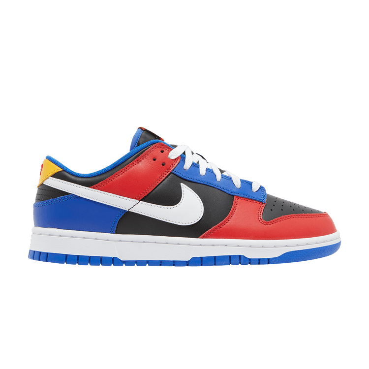 The Nike Dunk Low Tennessee State University features a black leather upper with white, blue, yellow, and red accents matching the varsity colors. The heel, mudguard, and quarter panels display red and blue detailing, while the tongue and heel tab include yellow embroidery. The tongue tag showcases the TSU logo, and the heel tab displays the founding year, 1912, in red. Tiger-striped insoles and alternate laces add unique flair. A rubber sole with a blue outsole and white midsole completes the design. Released on October 8, 2022, the Nike Dunk Low Tennessee State University is available now at Side Kicks.