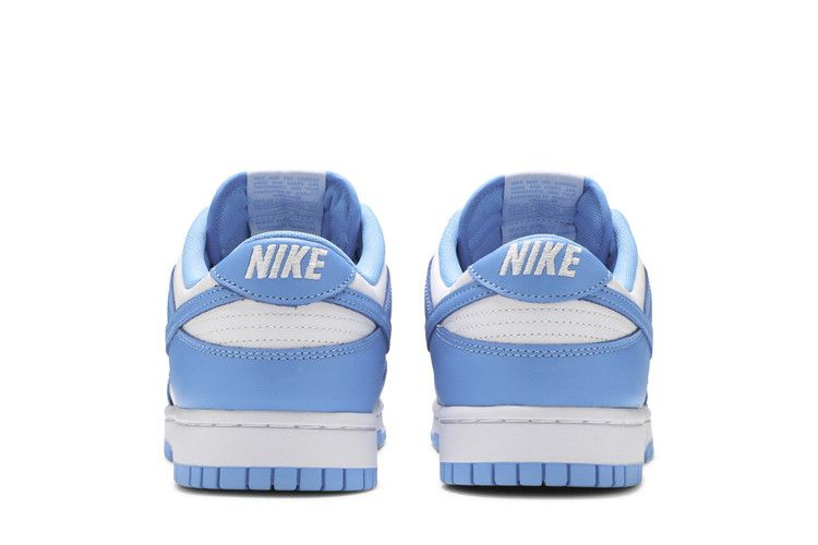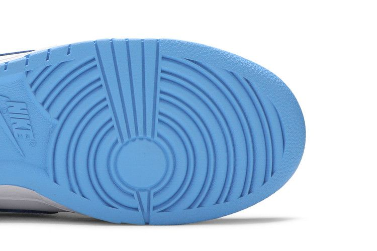 The Nike Dunk Low UNC (2021) features a two-tone colorway inspired by the retro silhouette's original 1985 color blocking. The all-leather upper is complemented by powder blue overlays and a matching Swoosh. A woven Nike tag on the nylon tongue adds a classic touch, while the padded collar ensures a comfortable fit. Finished with a rubber cupsole, this low-top sneaker pays homage to the University of North Carolina Tarheels with its white and University Blue design. Released in June 2021.