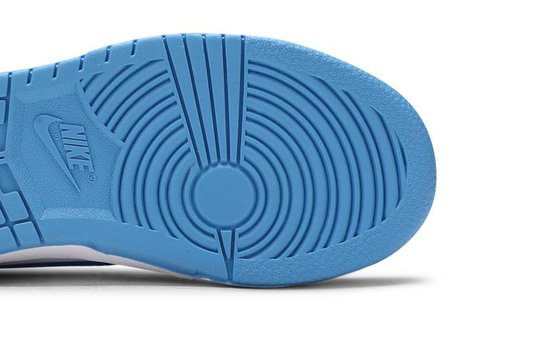 The Nike Dunk Low UNC (2021/2024) (PS) is a kids' sneaker featuring a leather upper in white with powder blue overlays. It includes Nike branding on the heel tab, tongue tag, and sockliner for added comfort. The rubber outsole provides durability and traction. Inspired by the 1985 college team shoe, this low-top sneaker is a stylish and practical choice for little ones.