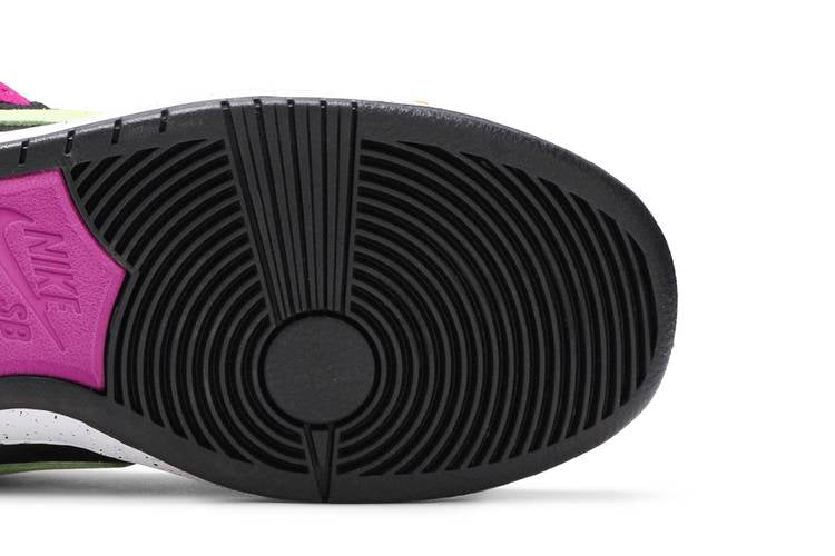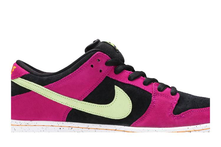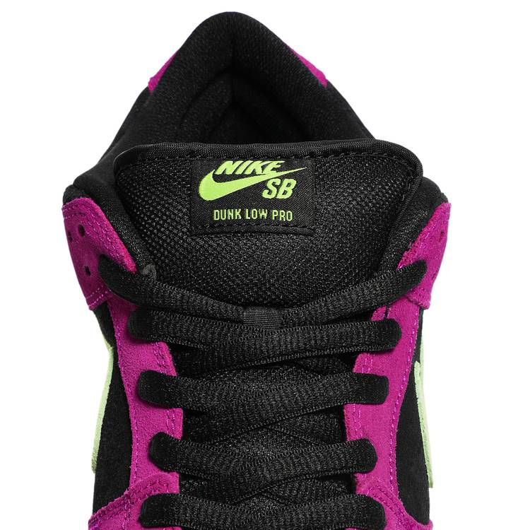 The Nike SB Dunk Low Pro ACG Terra Red Plum combines a Red Plum, Black, Taxi, and Citron color palette. This sneaker draws inspiration from ‘90s Nike ACG models, showcasing an all-suede upper with purple overlays on a black base. The Citron hue highlights the Swoosh, tongue tag, and foam insole. It boasts a Zoom Air unit in the heel for impact protection and features a speckled white rubber midsole for a retro outdoors aesthetic.