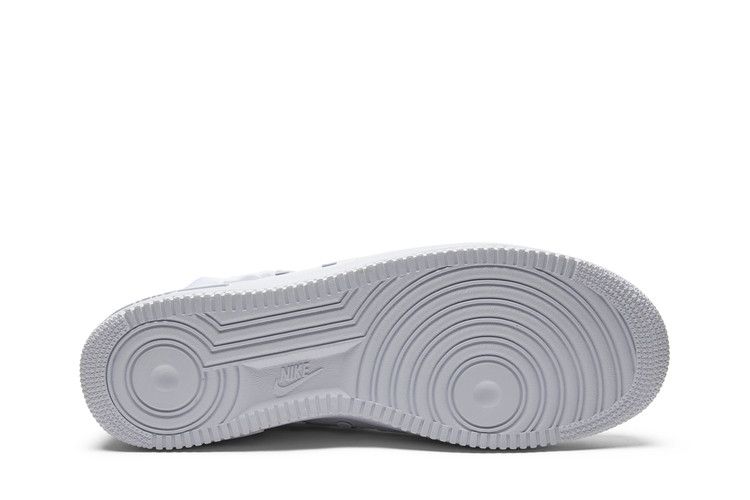 The Nike SF Air Force 1 High White (2017) blends the classic AF1 silhouette with a tactical Special Field boot design. It features a white tumbled leather forefoot with perforations, paired with ballistic nylon at the rear and ankle strap. The foam midsole includes Air cushioning, while the rubber outsole retains the AF1 traction pattern. A pleated nylon heel tab with a pull loop adds functionality. Released on November 4, 2017, the Nike SF Air Force 1 High White (2017) is available now at Side Kicks.