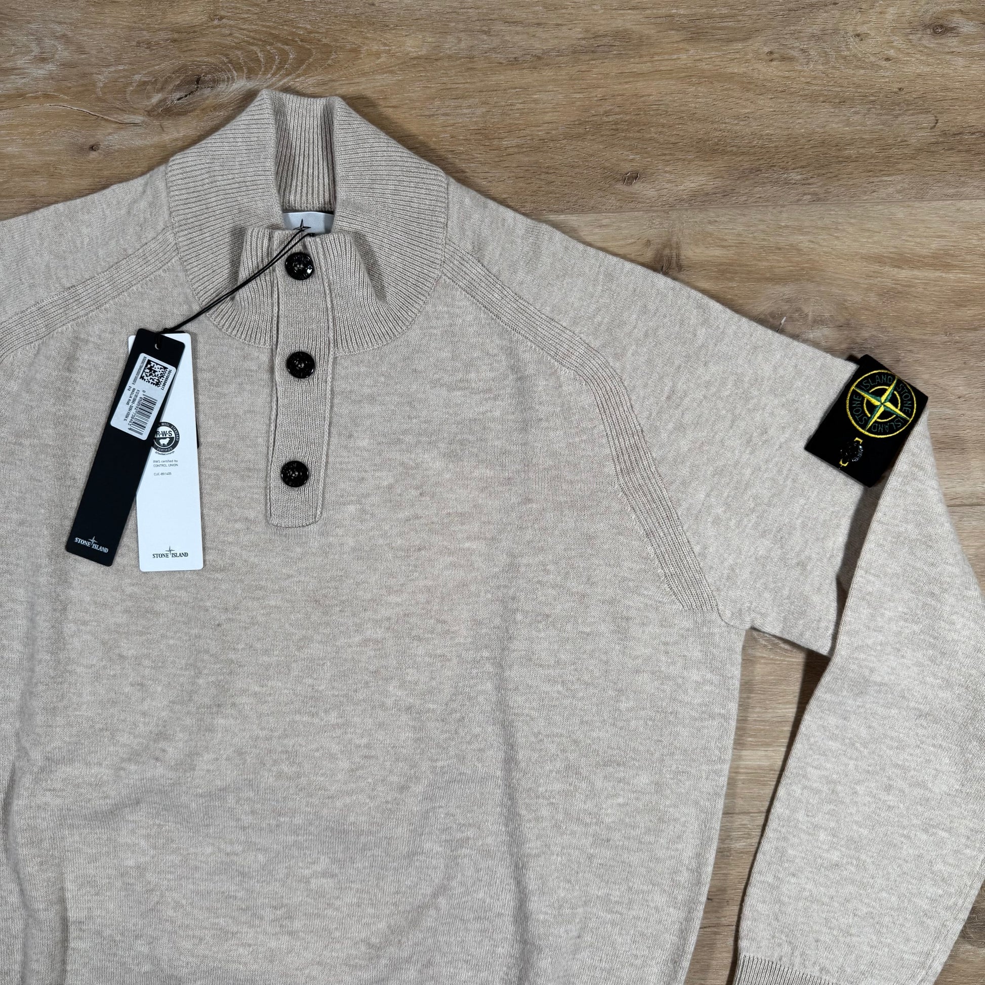 Stone Island Geelong Wool Half Button Jumper in Desert Melange