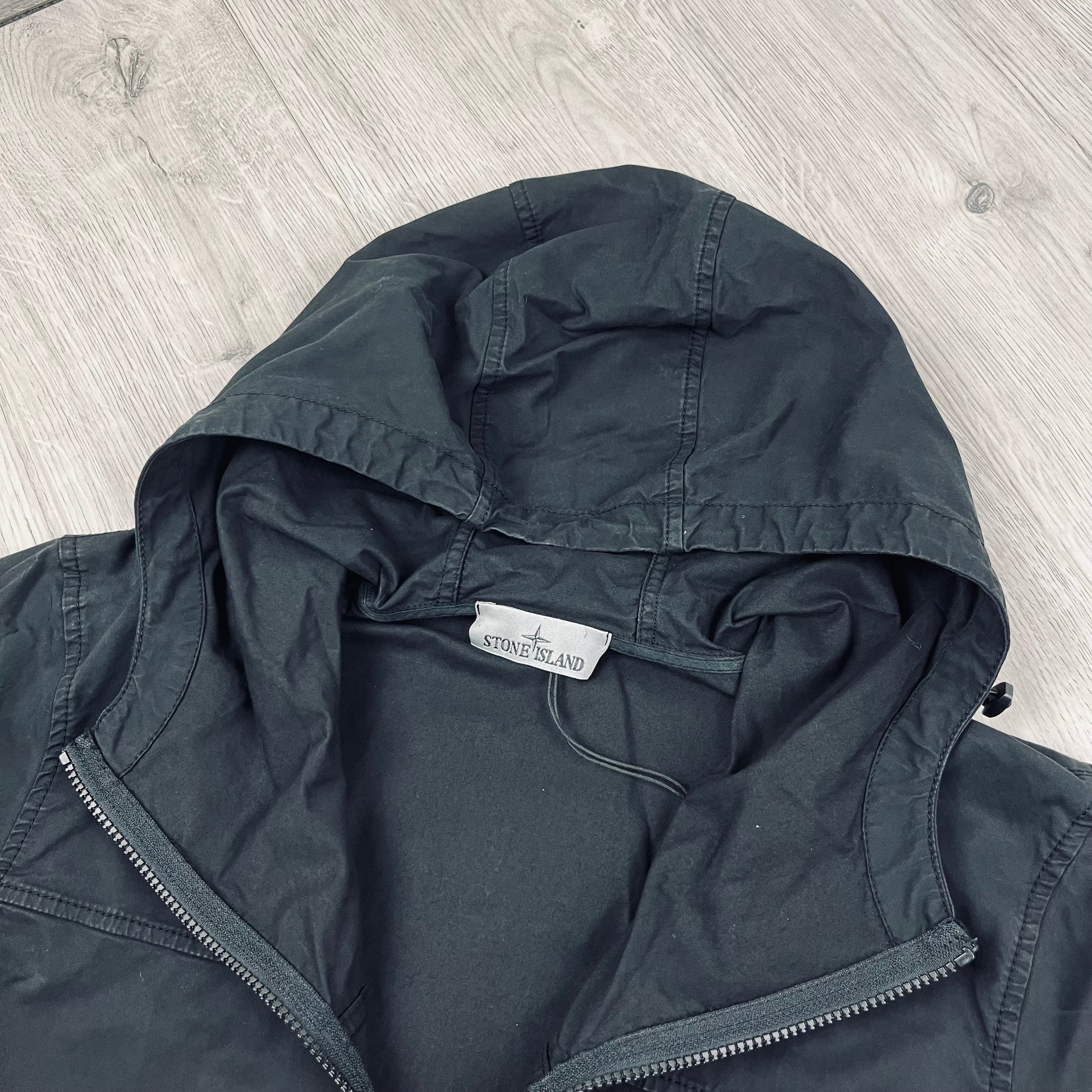 Men’s Stone Island Black garment dyed Supima cotton hooded overshirt with sleeve badge and chest pockets