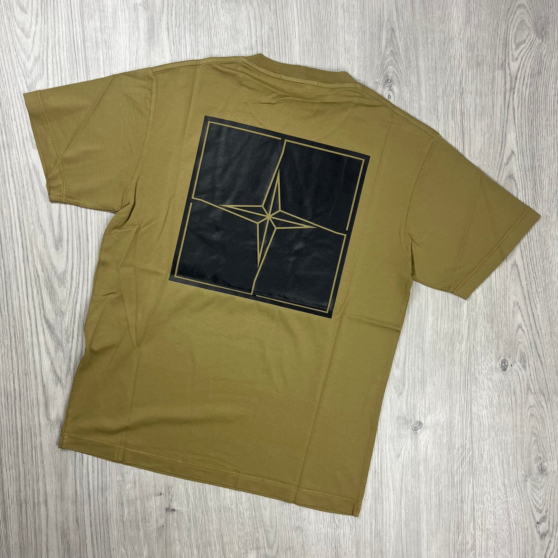 Dark Beige Stone Island 'Micro-Graphics One' T-Shirt with large compass print on the back
