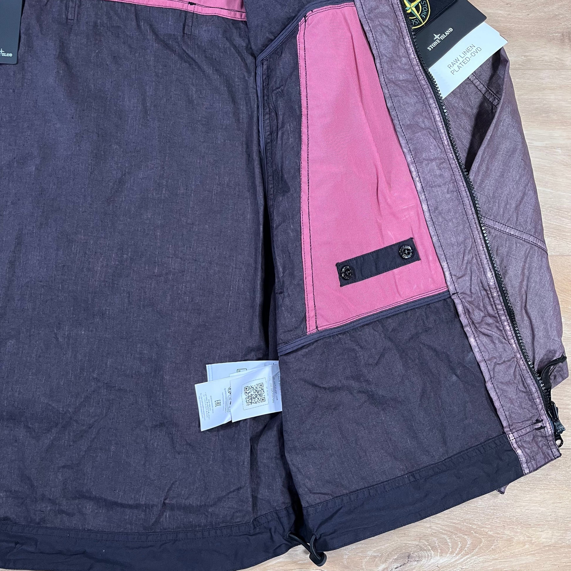 Stone Island Raw Linen Plated-OVD Jacket in Burgundy